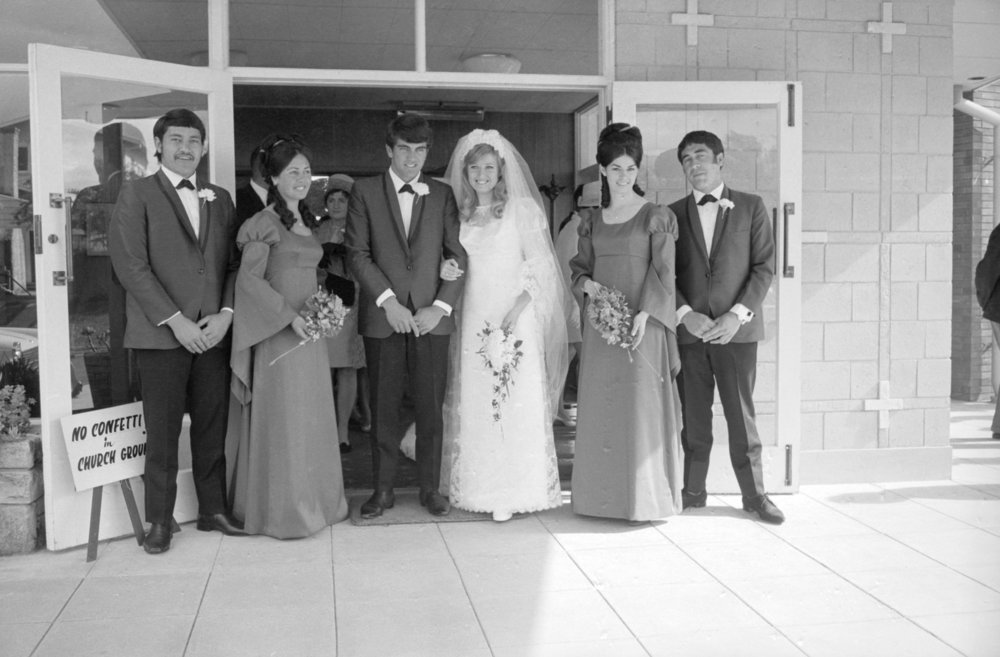 Date15 November 1969Reference NumberPhoto pn-4988DescriptionLowe-Law wedding. Photograph taken for magazine number 90 of the Bay of Plenty Photo News, 15 November 1969.FormatNegative