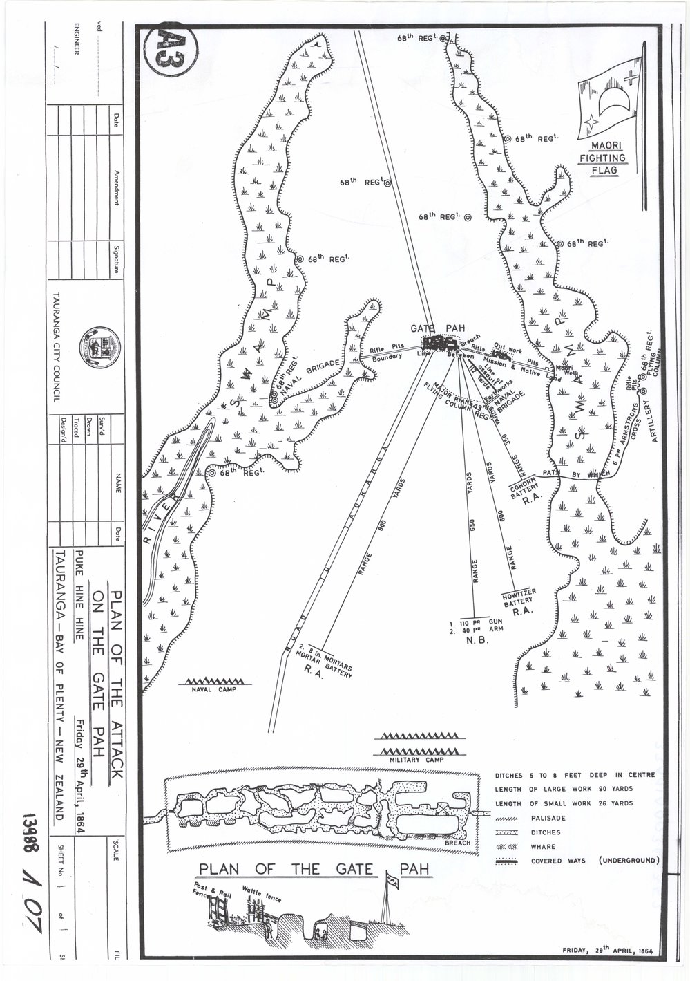 Tauranga City Council, Plan of the attack on Pukehinahina (Gate Pā). Pae Korokī, accessed 15/04/2026, https://paekoroki.tauranga.govt.nz/nodes/view/32943