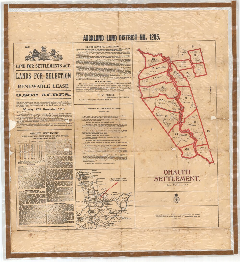 Toitū Te Whenua Land Information New Zealand|Stevens, Francis Alfred, Ōhauiti Settlement (17 November 1913). Pae Korokī, accessed 19/03/2026, https://paekoroki.tauranga.govt.nz/nodes/view/32952
