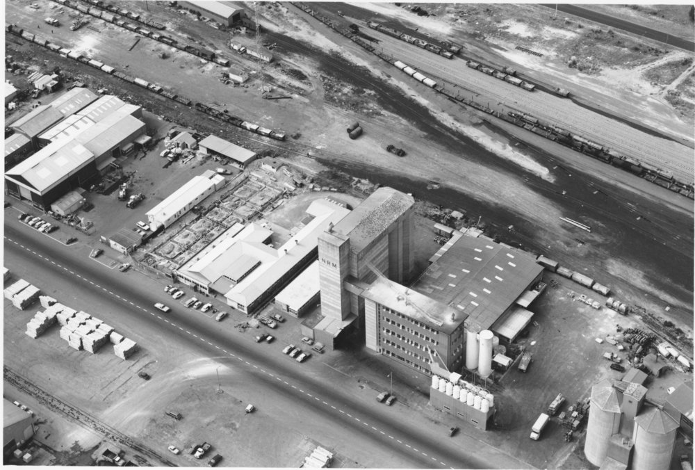 Date26 March 1974Reference NumberPhoto 99-1285DescriptionAerial view of Northern Roller Mills, flown 26 March 1974. FormatPrintPhysical Descriptionblack and white printSource of AcquisitionNorthern Roller Mills Photographer/CreatorAero Surveys Limited