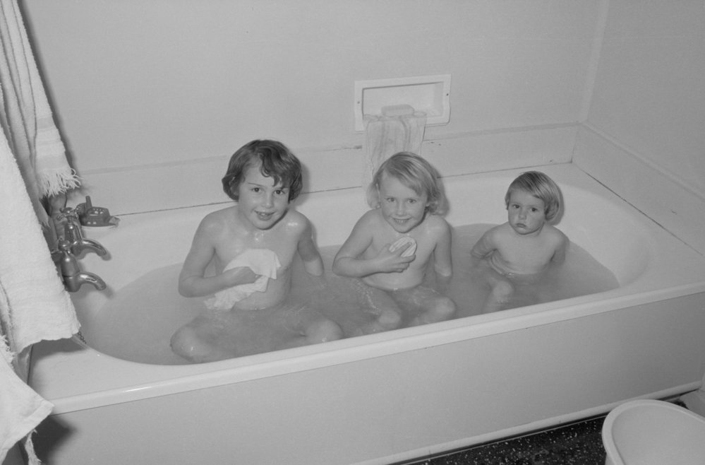 Date26 July 1969Reference NumberPhoto pn-3500DescriptionThree children in a bath. Photograph taken for magazine number 86 of the Bay of Plenty Photo News, 26 July 1969FormatNegative