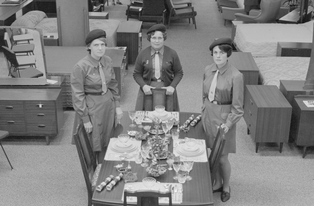 Date23 August 1969Reference NumberPhoto pn-3850DescriptionTable setting: Win Lamb, Lynn Bayliss & Judy Pettersson. Photograph taken for magazine number 87 of the Bay of Plenty Photo News, 23 August 1969, p.31FormatNegative