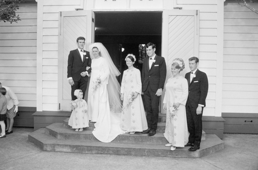 Date23 August 1969Reference NumberPhoto pn-3862DescriptionCox-Griffiths wedding. Photograph taken for magazine number 87 of the Bay of Plenty Photo News, 23 August 1969, p.38FormatNegative