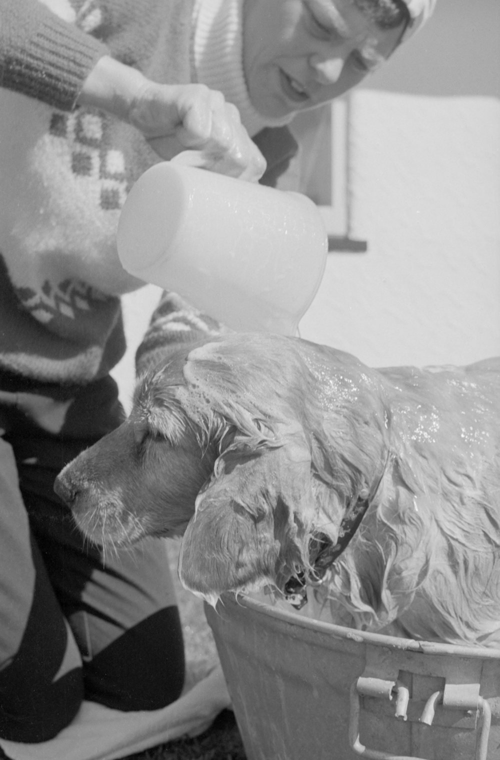 Date20 September 1969Reference NumberPhoto pn-3985DescriptionBath time for a dog. Photograph taken for magazine number 88 of the Bay of Plenty Photo News, 20 September 1969FormatNegative