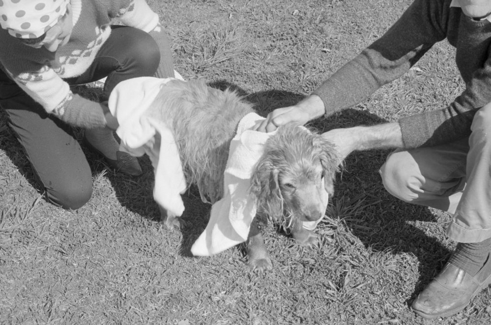 Date20 September 1969Reference NumberPhoto pn-3991DescriptionBath time for a dog. Photograph taken for magazine number 88 of the Bay of Plenty Photo News, 20 September 1969FormatNegative
