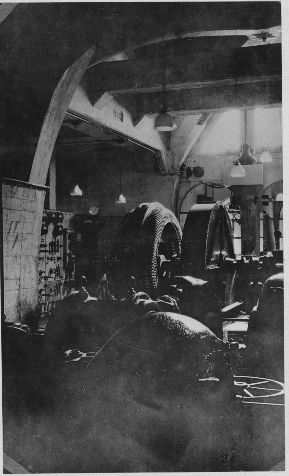 Date1920Reference NumberPhoto 99-1436DescriptionInterior of Ōmanawa Falls Power Station, 1920.