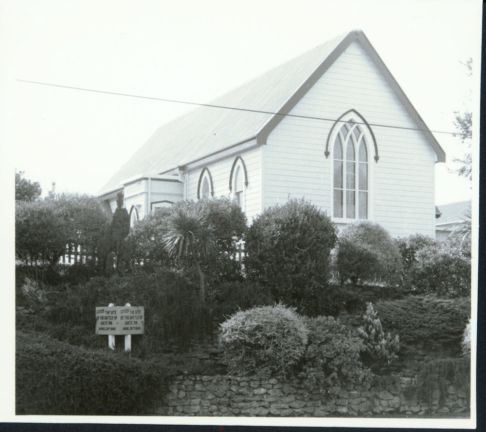 Reference NumberPhoto 06-236DescriptionSt George's Church, Gate Pā, circa 1980s. Bay Sun photo.FormatPrintPhysical Descriptionblack and white printPhotographer/CreatorBay of Plenty Times