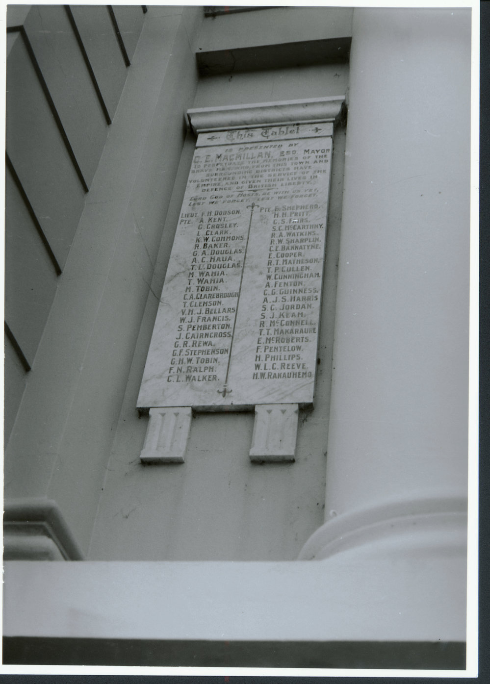 Date1987Reference NumberPhoto 06-345DescriptionRoll of Honour, Tauranga Town Hall 1987FormatPrintPhysical Descriptionblack and white printPhotographer/CreatorBob Tulloch