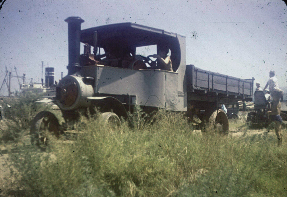 Date1960sReference NumberPhoto 06-490DescriptionVintage truck at Port of Tauranga, 1960s. AutoColour used at 64% opacity.FormatPrintPhysical Descriptioncolour slide