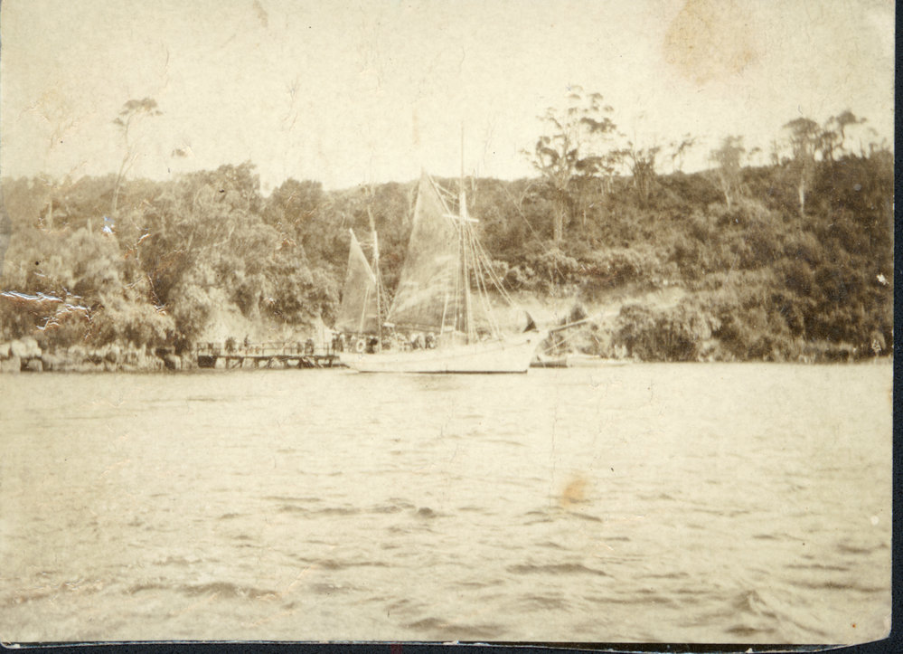 Datec.1900sReference NumberPhoto 07-006DescriptionScow at Kaituna landing, circa 1900s.FormatPrintPhysical Descriptionblack and white print