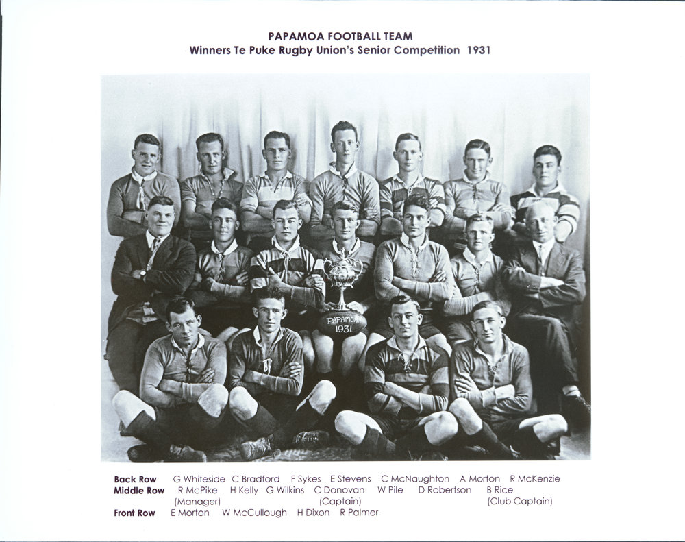 Date1931Reference NumberPhoto 07-013DescriptionPāpāmoa Football Team. Winners Te Puke Rugby Union's Senior Competition, 1931.