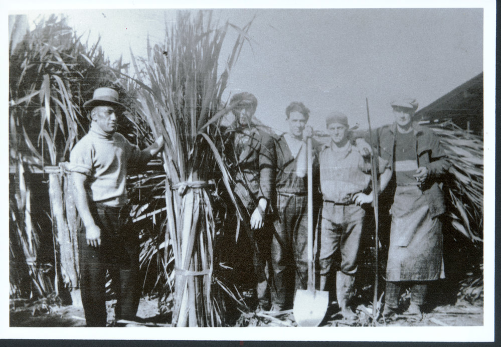 Datec.1927Reference NumberPhoto 07-191Description"Flaxies" at Pukehina flax mill, Te Puke, about 1927. From photo album of late Len Rountree of Foxton, who worked at the mill. All men unidentified. Copy supplied by Ian Matheson, 10 Carlton Avenue, Palmerston North, March 1991.FormatPrintPhysical Descriptionblack and white printPhotographer/CreatorIan Matheson