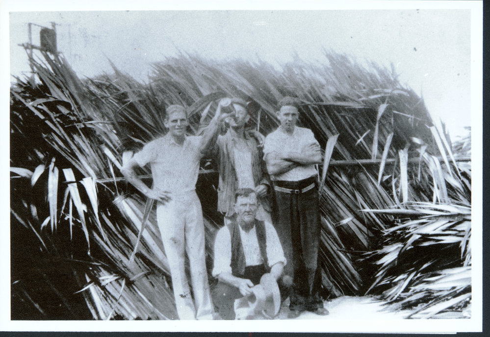 Datec.1927Reference NumberPhoto 07-193Description"Flaxies" at Pukehina flax mill, Te Puke, about 1927. From photo album of late Len Rountree of Foxton, who worked at the mill. The only man identified in this group is Len Rountree (standing far right). Copy supplied by Ian Matheson, 10 Carlton Avenue, Palmerston North, March 1991.FormatPrintPhysical Descriptionblack and white printPhotographer/CreatorIan Matheson