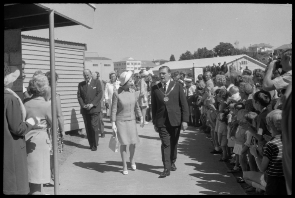 Date4 April 1970Reference NumberPhoto pn-6984DescriptionTauranga's royal welcome: walkabout. Photograph taken for magazine number 94 of the Bay of Plenty Photo News, 4 April 1970.FormatNegative