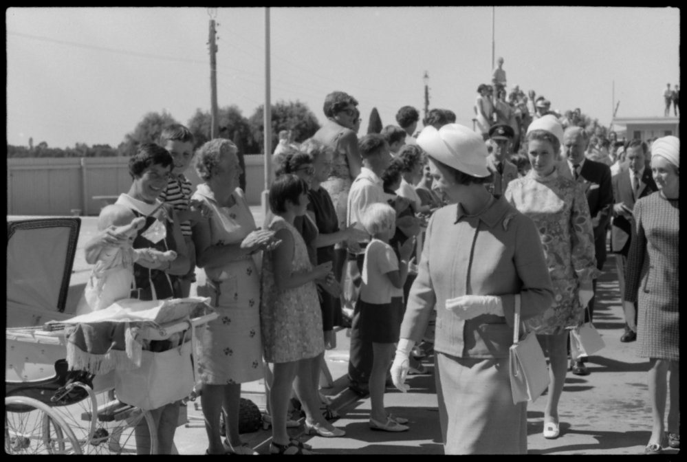Date4 April 1970Reference NumberPhoto pn-6993DescriptionTauranga's royal welcome: walkabout. Photograph taken for magazine number 94 of the Bay of Plenty Photo News, 4 April 1970.FormatNegative