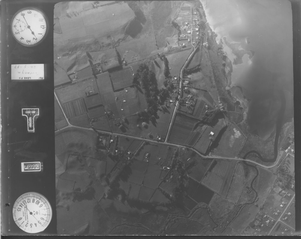 Date20 May 1937Reference NumberPhoto 99-523DescriptionAerial view of Ōtūmoetai showing the Hūria (Judea) settlement, Judea Road, Waihī Road, (across centre), the Kopurererua Stream (right). 20 May 1937. FormatPrintPhysical Descriptionblack and white print
