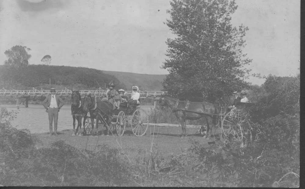 Datec. 1914Reference NumberPhoto 99-614DescriptionMirrielees family picnic to the Wairoa river with Colonel Porritt, c. 1914. FormatPrintPhysical Descriptionblack and white printSource of AcquisitionMirrielees, Joan (Acc No 3381)Photographer/CreatorMirrielees, Alexander James, 1878-1972