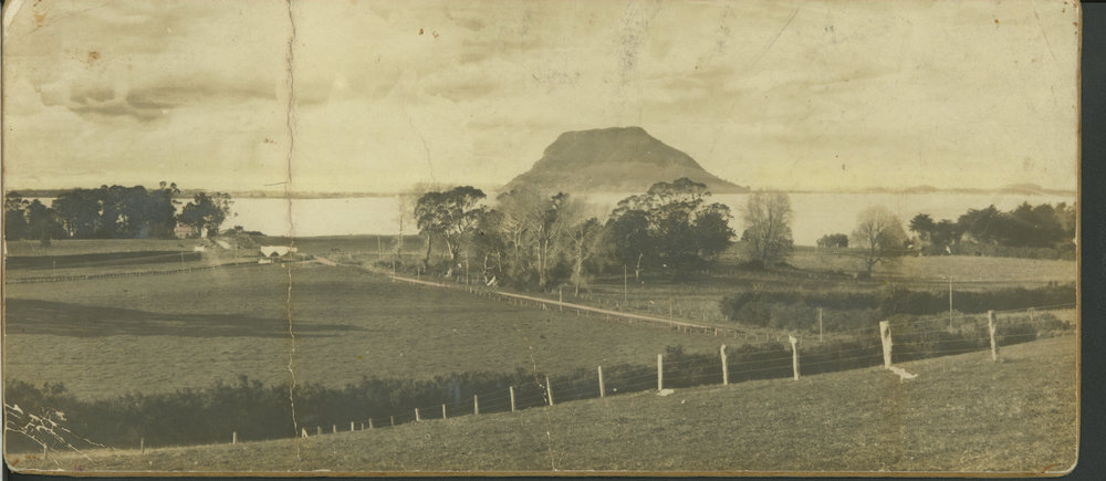 Date1929Reference NumberPhoto 99-618DescriptionŌtūmoetai Road, looking towards the harbour and Mauao. 1929. Shows concrete railway overbridge. FormatPrintPhysical Descriptionsepia printSource of AcquisitionMatheson, Alister