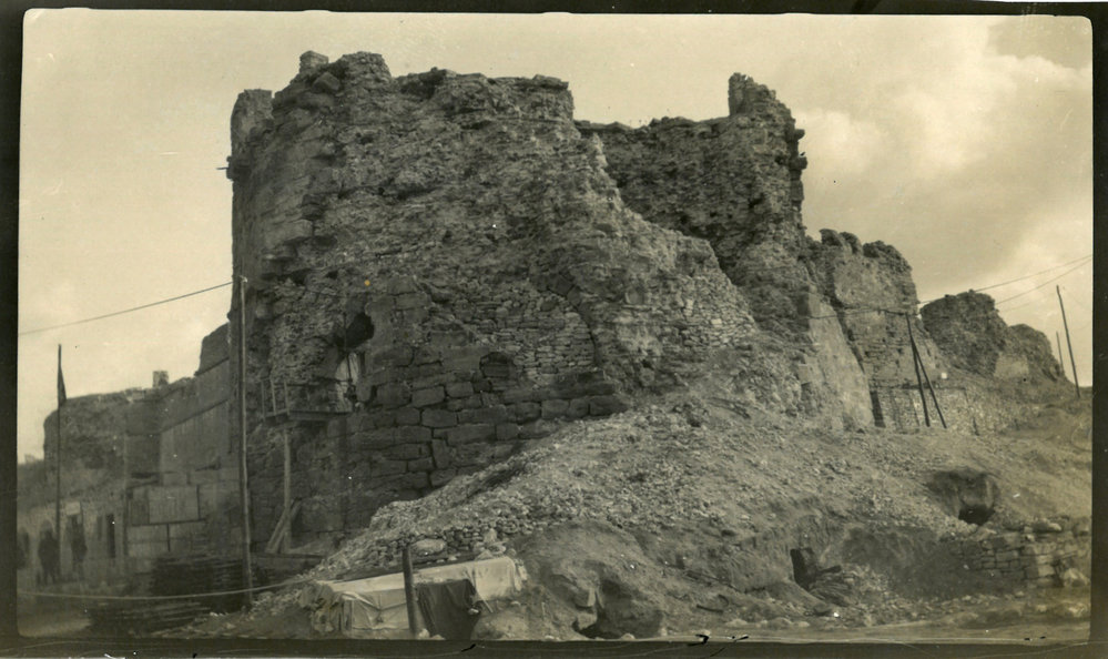 Date1914-1918Reference NumberPhoto 14-0002DescriptionHandwritten overleaf: Old castle at Sedd. El. Bahr. Gallipoli. Showing effects of bombardment by Queen Elizabeth & other battleships.FormatPrintPhotographer/CreatorRobert Goulding