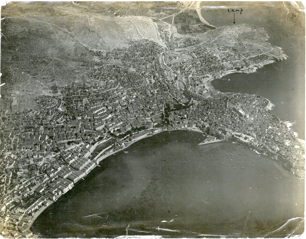 Date1914-1918Reference NumberPhoto 14-0006DescriptionAerial photograph from the First World War identifying Camp location. FormatPrintPhotographer/CreatorRobert Goulding