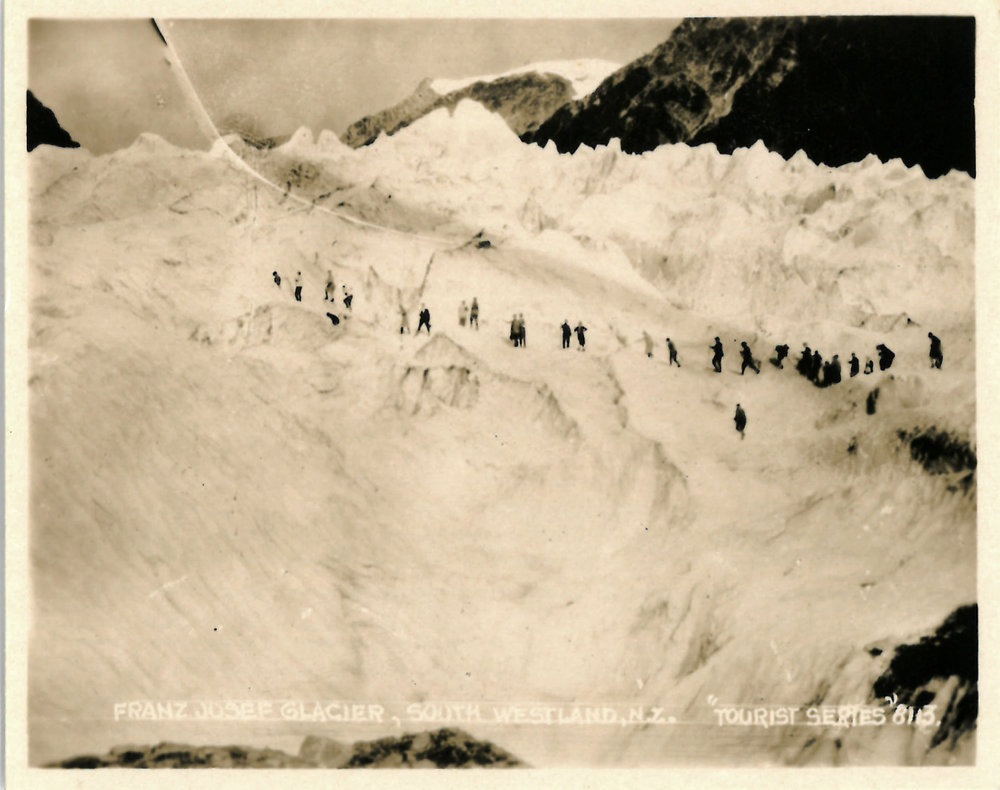 "Franz Joseph Glacier, South Westland, N.Z. Tourist series 813" (1914-1919). Pae Korokī, accessed 19/03/2026, https://paekoroki.tauranga.govt.nz/nodes/view/38553