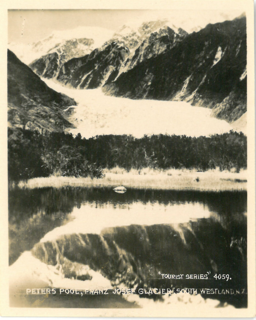 Peters Pool, Franz Josef Glacier South Westland N.Z. Tourist Series 4059 (1914-1919). Pae Korokī, accessed 19/03/2026, https://paekoroki.tauranga.govt.nz/nodes/view/38554