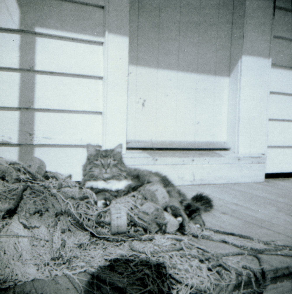 Nicky the cat, comfortable on a pile of fishing nets (1960s). Pae Korokī, accessed 25/04/2026, https://paekoroki.tauranga.govt.nz/nodes/view/38984