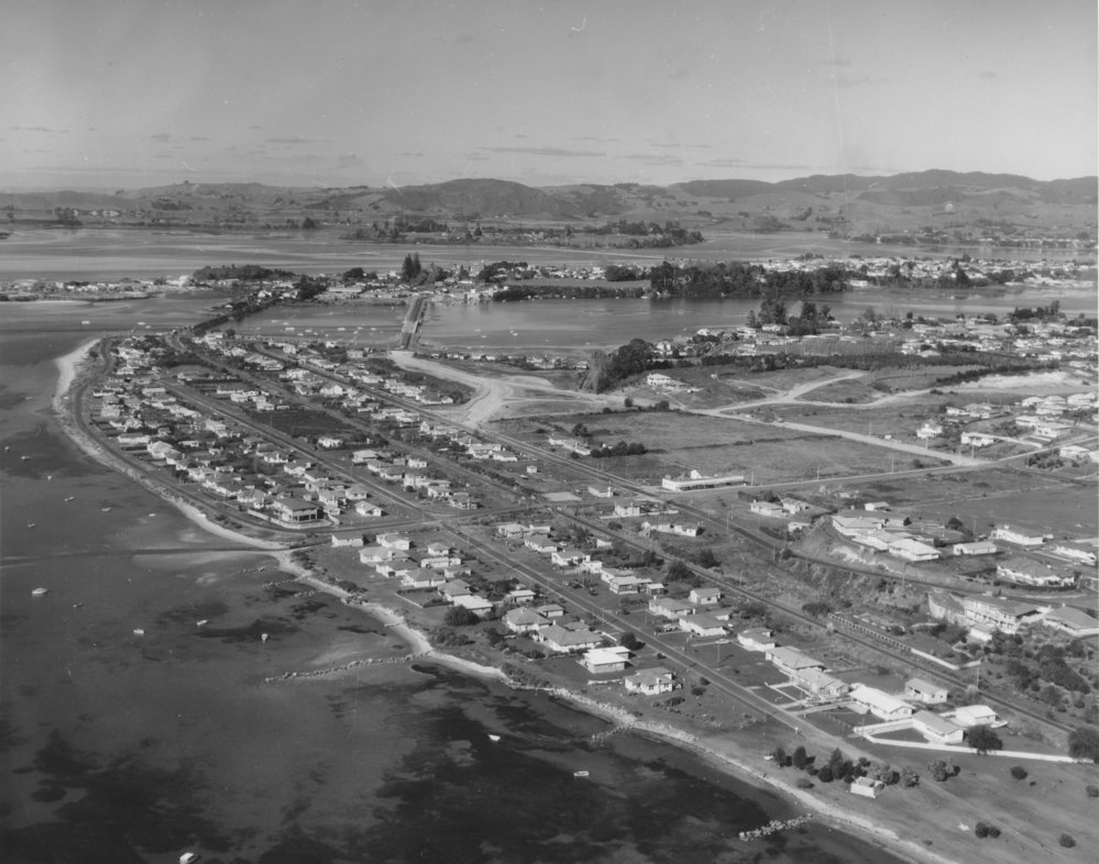 DateSunday, 19 May 1963Reference NumberPhoto 00-429DescriptionAerial showing Pillans Point, Ōtūmoetai. Bureta Road runs left to right at centre, Kulim Avenue runs diagonally and is parallel with the foreshore. What was the site of the Ōtūmoetai Trust, and later Bureta Park is just right of centre. Lower Bureta dairy on corner of Ngatai Road and Bureta Road. A Whites Aviation photo 60501 (alternative number 473i) taken on May 19, 1963.FormatPrintPhysical Descriptionblack and white printPhotographer/CreatorWhites Aviation