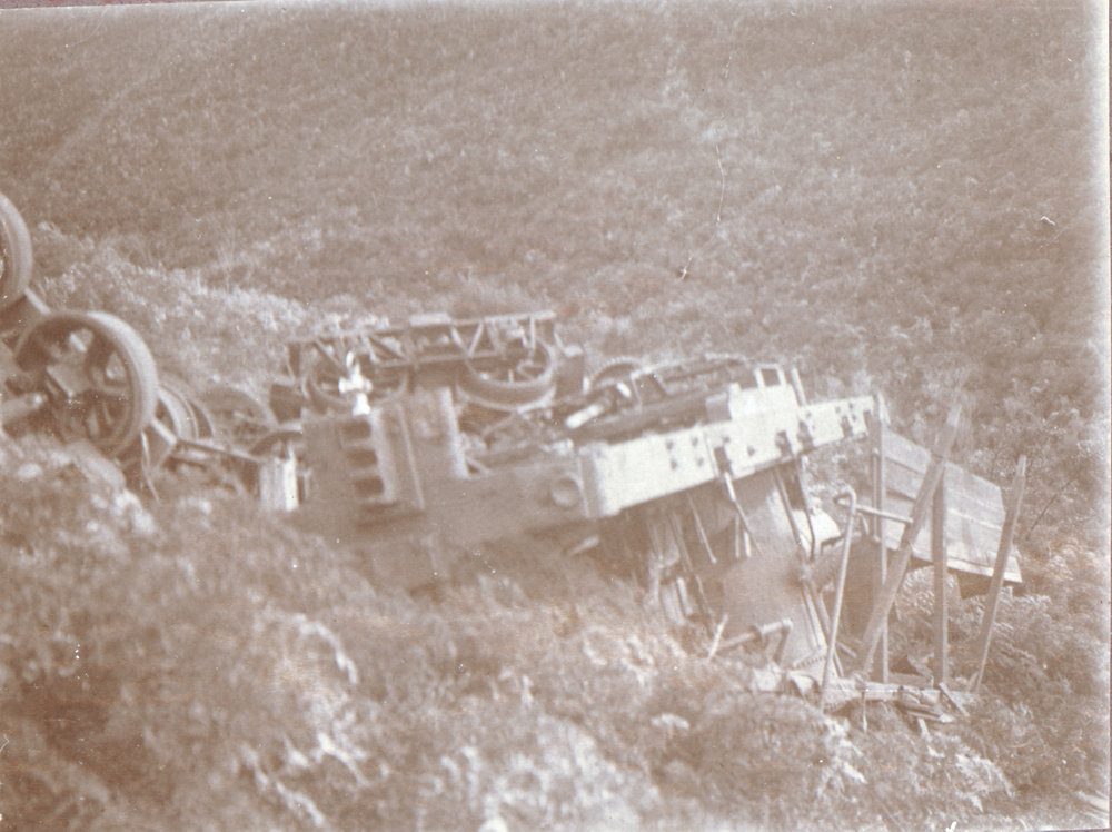 Date1915Reference NumberPhoto 05-567DescriptionLocomotive accident at Whakamārama, caption: "where Johnny Rangi was killed." See Bay of Plenty Times, Friday 4 June 1915: the young man was John Aorangi and he met his end when the engine capsized on a sharp curve and pinned him underneath it. He was severely scalded and died about 3 hours later.FormatPrintPhysical Descriptionblack and white print