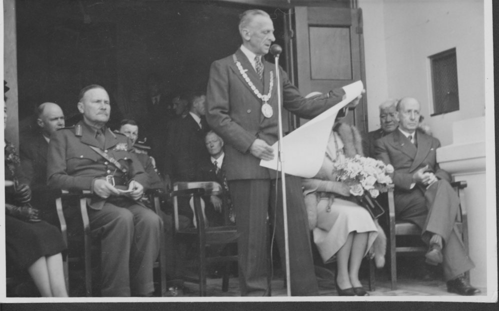 Date18 October 1948Reference NumberPhoto 99-829DescriptionLionel R. Wilkinson reading the address of welcome to Bernard Freyberg (Governor General 1946-52) during the Vice-Regal visit on 18 October 1948.