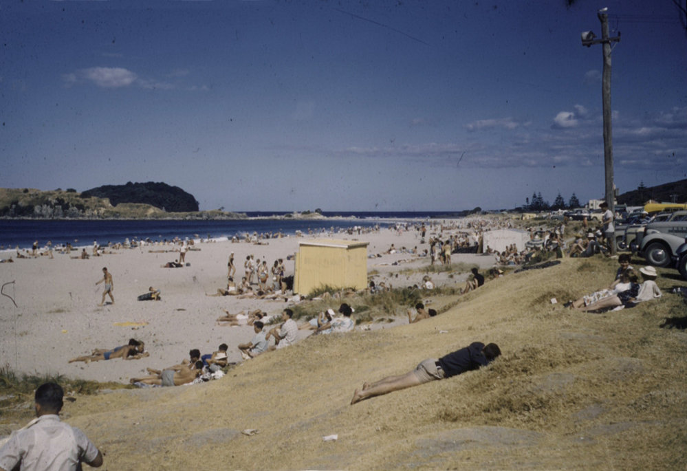 Date1960sReference NumberPhoto 06-172DescriptionOcean Beach, Mount Maunganui, on a hot summer's day in the early 1960s. Moturiki and Motuotau on left.FormatPrintPhysical Descriptioncol slidePhotographer/CreatorDavid Allan Murdoch