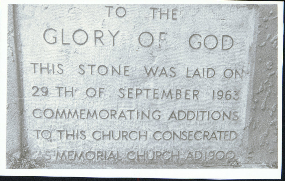 Commemoration stone at St George's Church, Gate Pā, Tauranga, c. 1970s