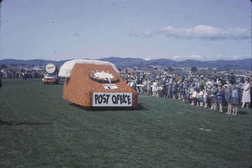 Giant telephone, Post Office float in parade, Tauranga, 1960s (1960s). Pae Korokī, accessed 25/03/2026, https://paekoroki.tauranga.govt.nz/nodes/view/39309