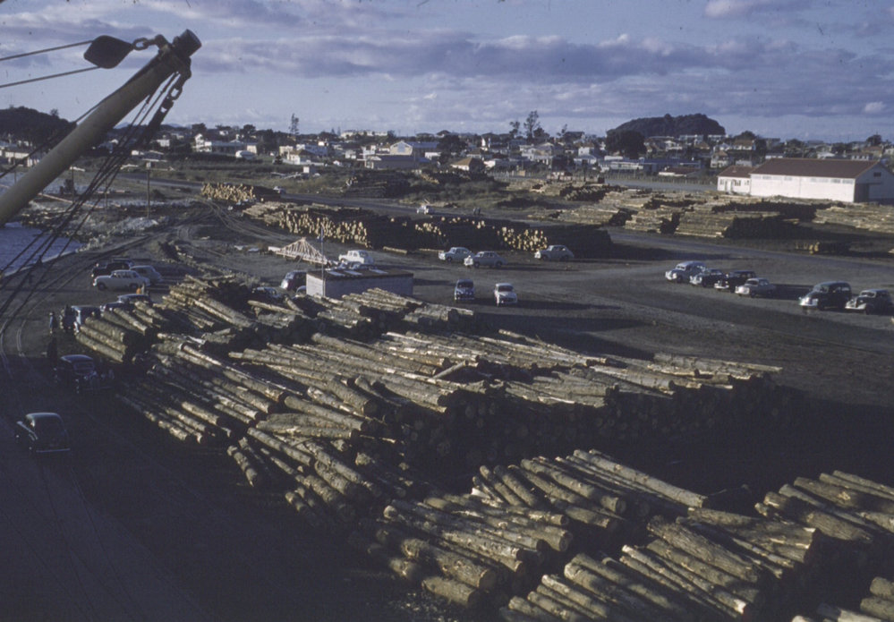 Date1960sReference NumberPhoto 06-417DescriptionLogs at Port of Tauranga, c1960s.FormatPrintPhysical Descriptioncol slidePhotographer/CreatorDavid Kirk Murdoch