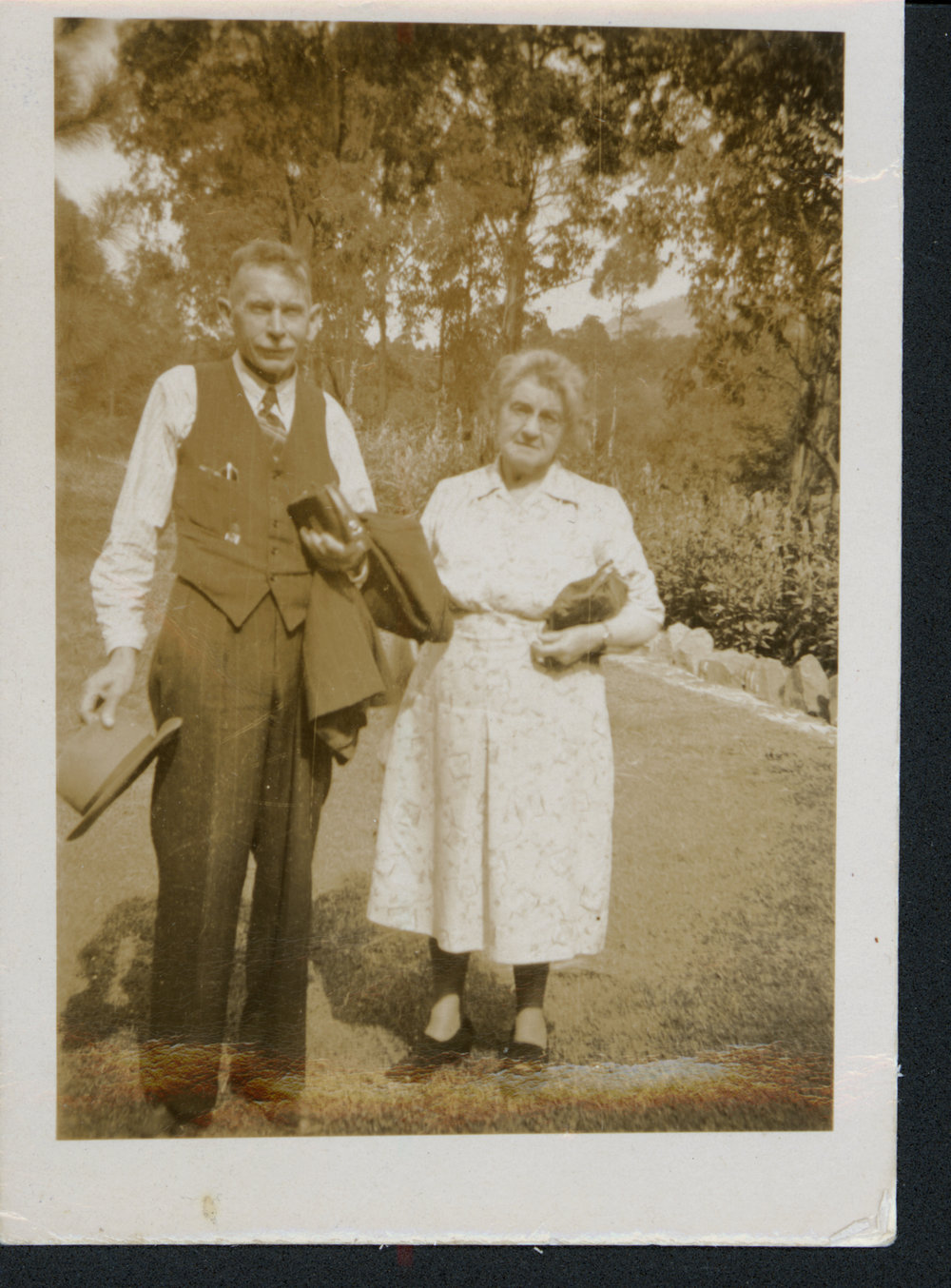 Date1950Reference NumberPhoto 06-503DescriptionFred and Mary Christian in Australia, 1950: the Maroondah Reserve - "either Melbourne or Hobart".FormatPrintPhysical Descriptionblack and white print