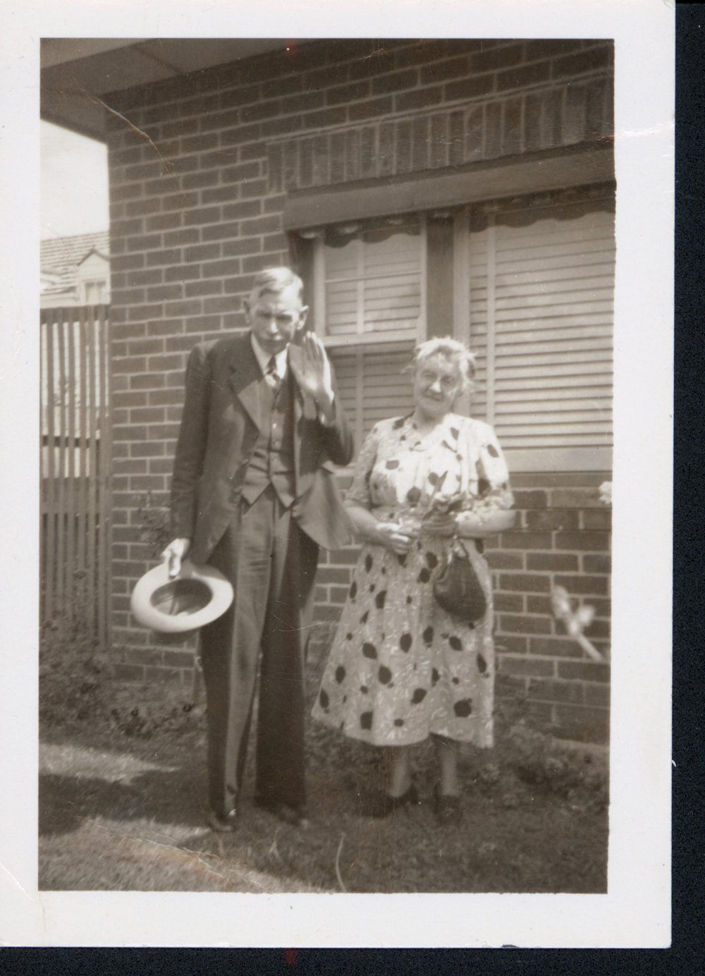 Date1950Reference NumberPhoto 06-504DescriptionFred and Mary Christian in Australia, 1950. Written in pen on back: "Mr. Christensen [sic] waving at the flys [sic] - when he recommended that all Australian flys be muzzled.".FormatPrintPhysical Descriptionblack and white print