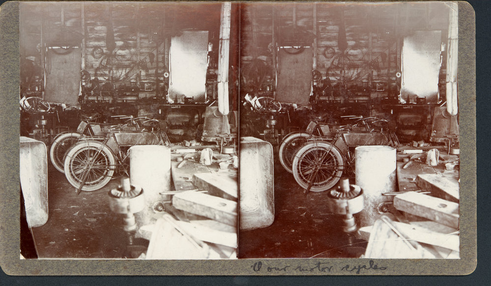 Date1910sReference NumberPhoto 06-531DescriptionStereoscope card of F. N. Christian's garage, showing workshop; Tauranga c. 1910s (probably). Titled 'All our motor cycles'.FormatPrintPhysical Descriptionstereoscope