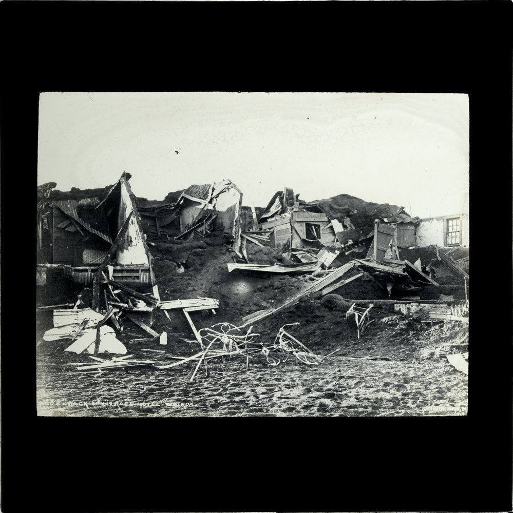 Ruins of MacRae's Hotel, Wairoa, after Tarawera eruption, 1886 ([c. Jul 1886]). Pae Korokī, accessed 19/03/2026, https://paekoroki.tauranga.govt.nz/nodes/view/39957