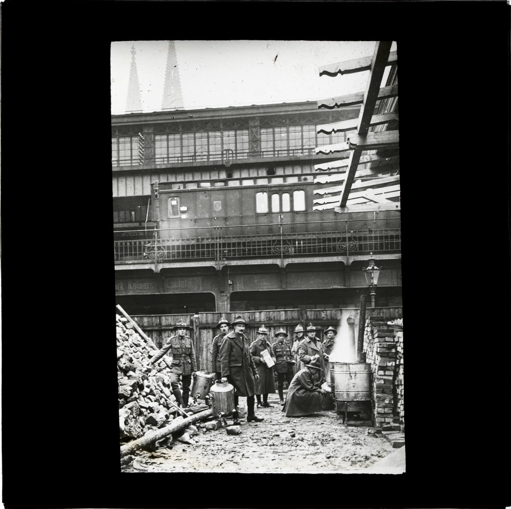 Soldiers cooking for a YMCA event in the rubble of Cologne Station ([c. 1914-c. 1919]). Pae Korokī, accessed 26/03/2026, https://paekoroki.tauranga.govt.nz/nodes/view/40006
