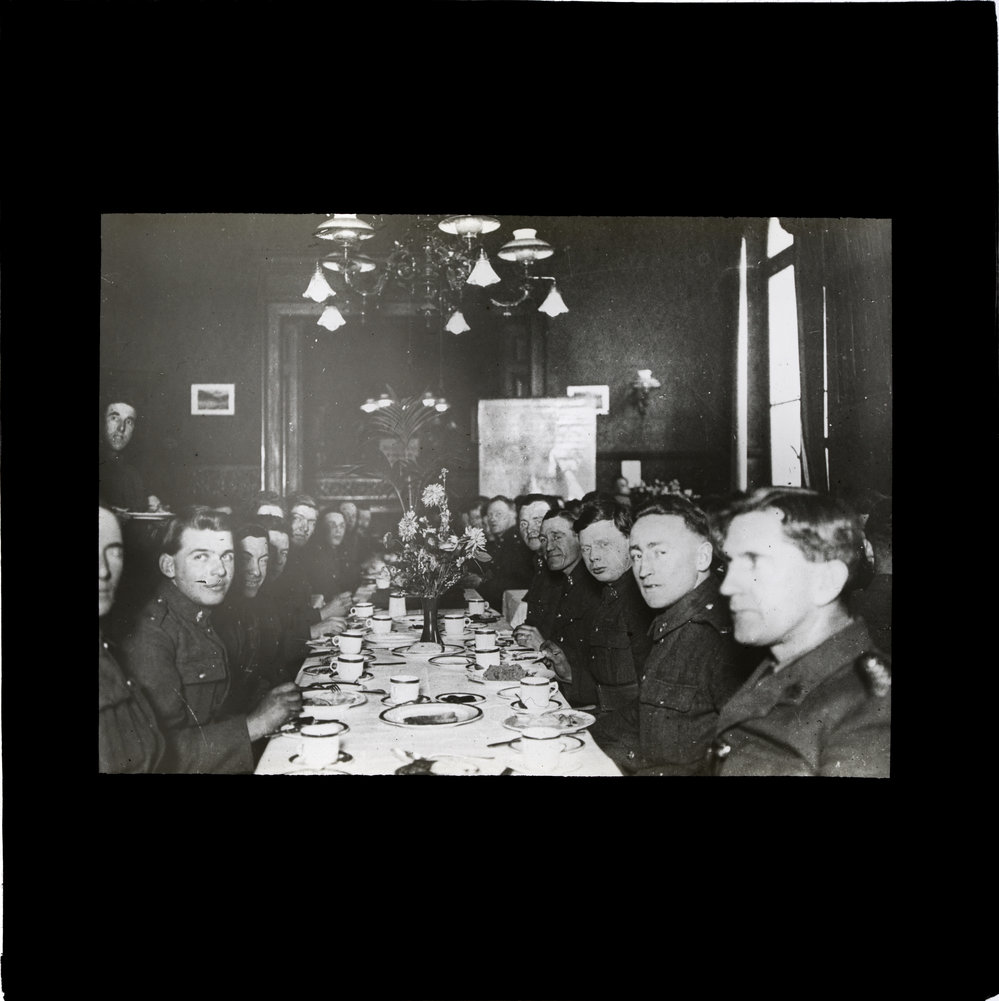 Soldiers having "Brotherhood Tea" at YMCA Canteen, Nullheim, Germany ([c. 1914-c. 1919]). Pae Korokī, accessed 26/03/2026, https://paekoroki.tauranga.govt.nz/nodes/view/40007
