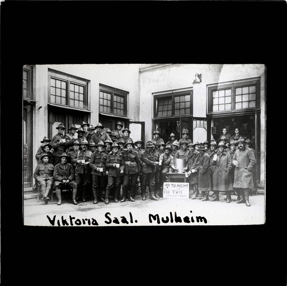 Soldiers attending concert at YMCA Viktoria Saal, Nullheim, Germany ([c. 1914-c. 1919]). Pae Korokī, accessed 26/03/2026, https://paekoroki.tauranga.govt.nz/nodes/view/40010
