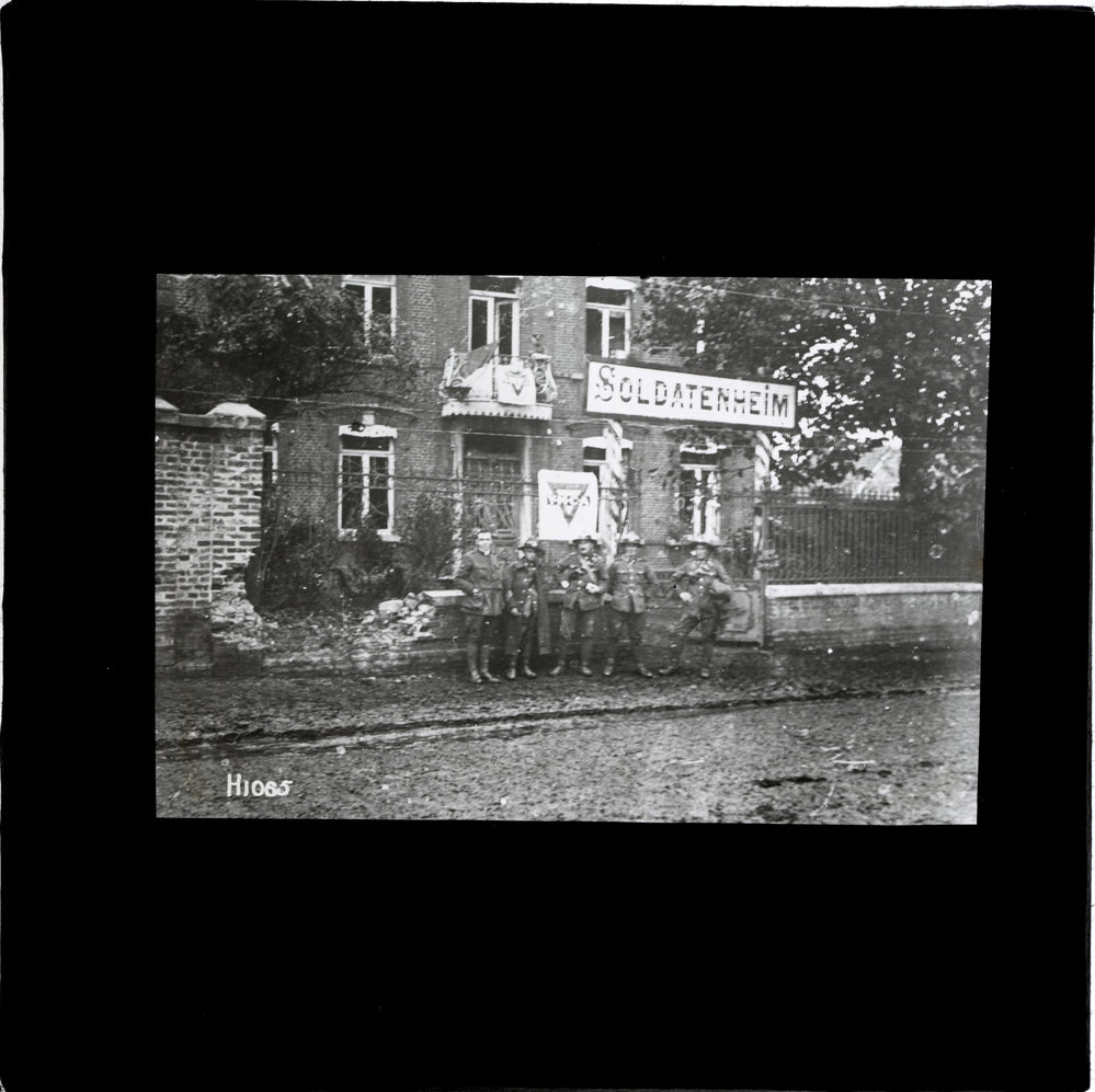 Soldiers at YMCA in captured German Officers Club, Fontaine ([c. 1914-c. 1919]). Pae Korokī, accessed 05/04/2026, https://paekoroki.tauranga.govt.nz/nodes/view/40031