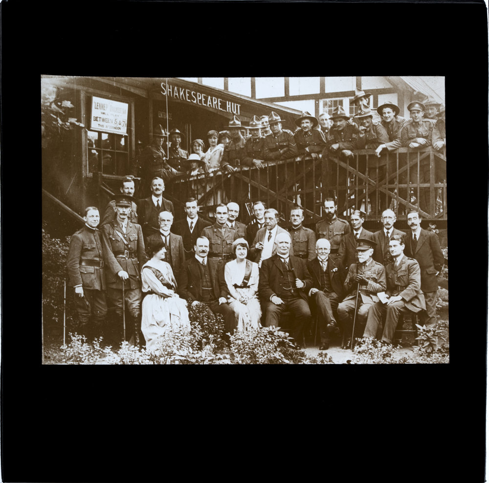 Visitors in garden of Shakespeare Hut, London ([c. 1914-c. 1919]). Pae Korokī, accessed 05/04/2026, https://paekoroki.tauranga.govt.nz/nodes/view/40041