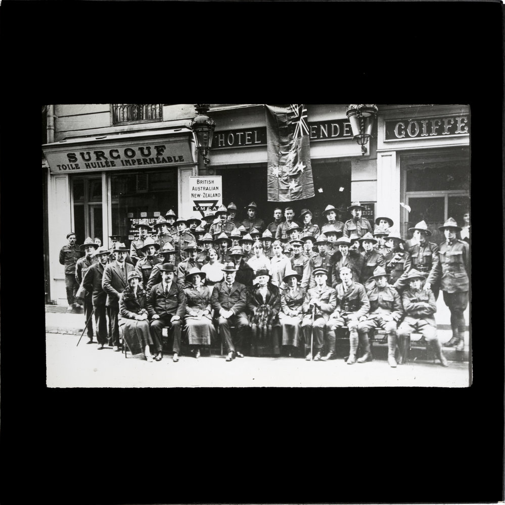 YMCA group at Hotel d'Ostende, Paris ([c. 1914-c. 1919]). Pae Korokī, accessed 05/04/2026, https://paekoroki.tauranga.govt.nz/nodes/view/40051