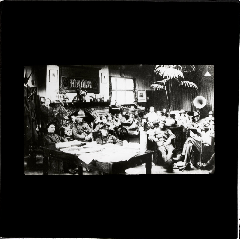 Soldiers relaxing at Kia Ora Lounge, Shakespeare Hut, London ([c. 1914-c. 1919]). Pae Korokī, accessed 05/04/2026, https://paekoroki.tauranga.govt.nz/nodes/view/40053
