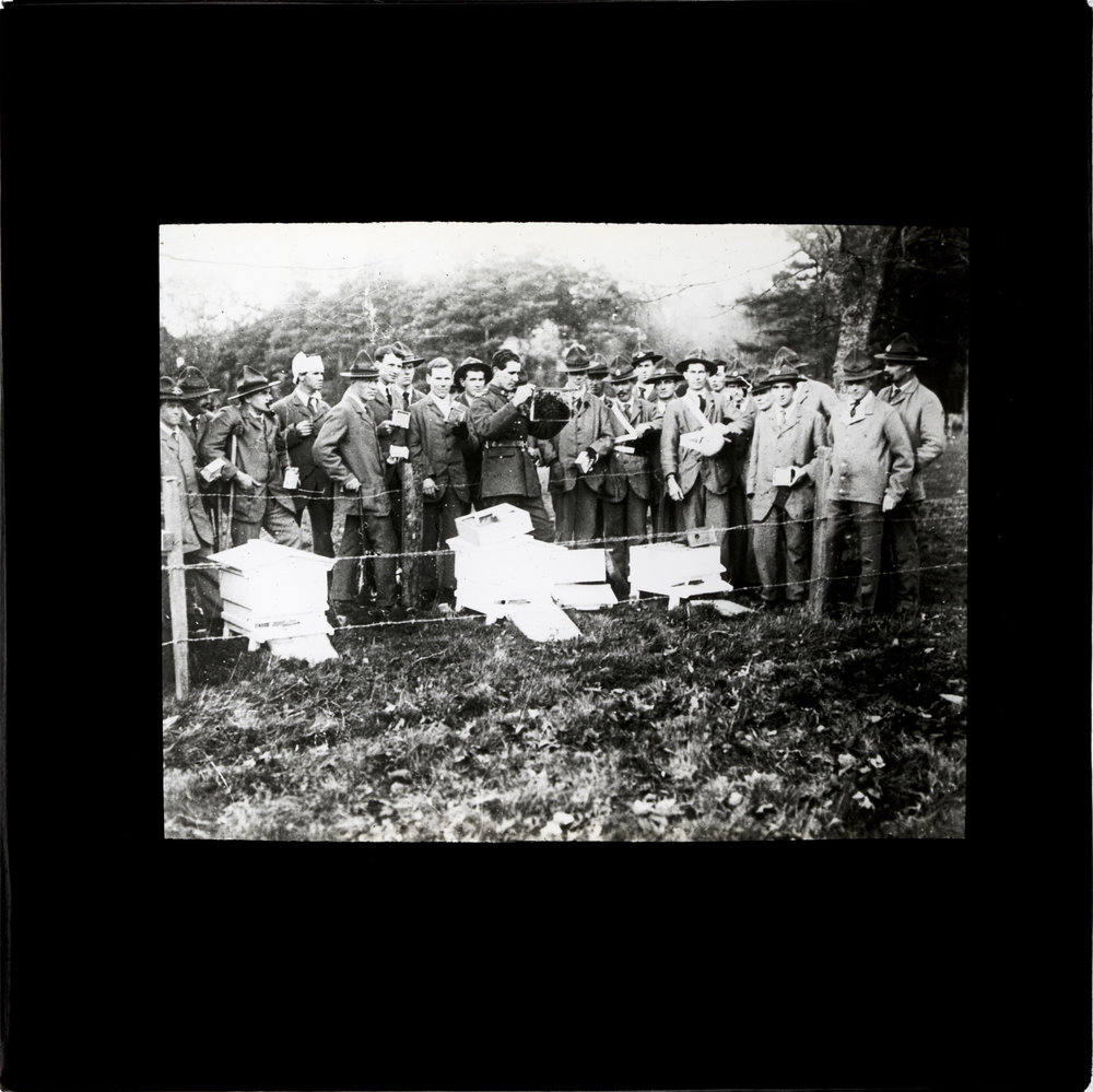 Soldiers attending beekeeping class at YMCA Convalescent Campo, Brockenhurst ([c. 1914-c. 1919]). Pae Korokī, accessed 05/04/2026, https://paekoroki.tauranga.govt.nz/nodes/view/40064