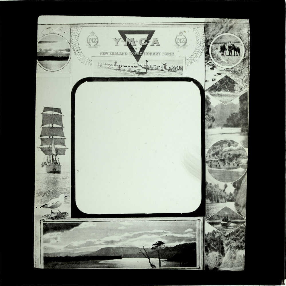 YMCA/NZEF montage frame with various photographic scenes from New Zealand