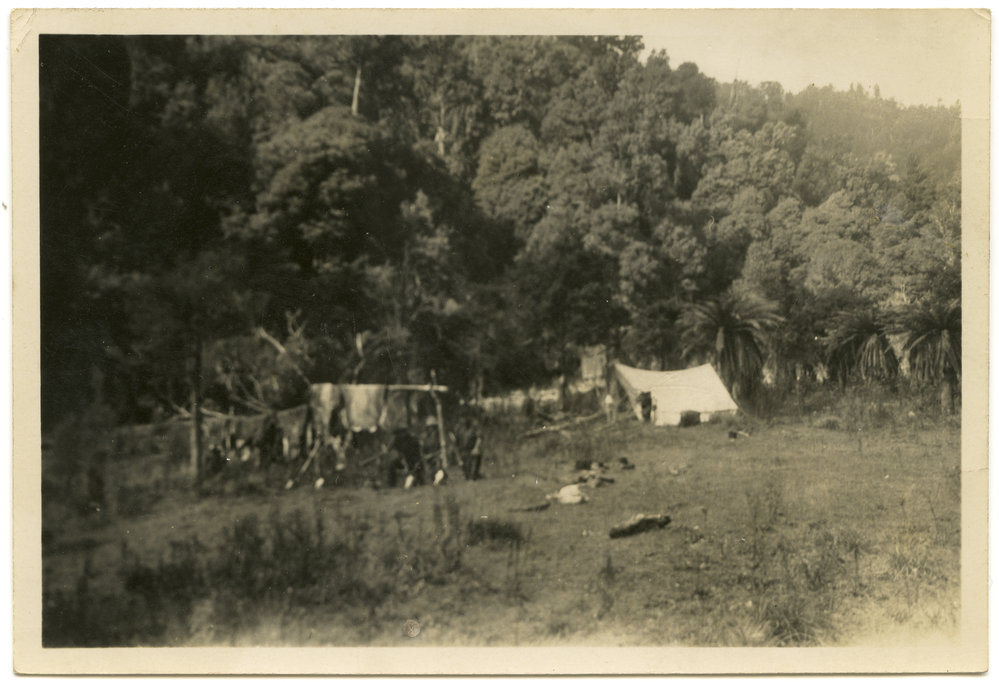 Tented camp in bush clearing (Within Sladden's adult life (1900-1961)). Pae Korokī, accessed 20/03/2026, https://paekoroki.tauranga.govt.nz/nodes/view/40273