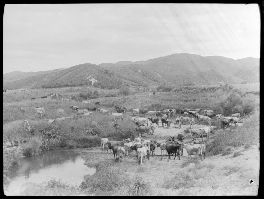 Herd of cattle in stream (Within Sladden's adult life (1900-1961)). Pae Korokī, accessed 25/03/2026, https://paekoroki.tauranga.govt.nz/nodes/view/40452