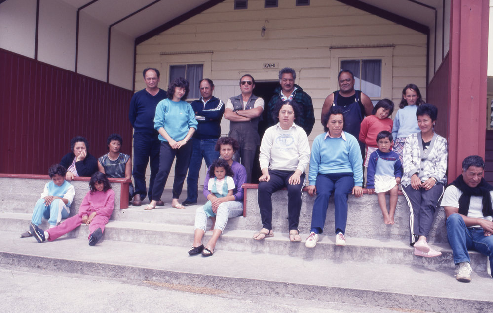 Descendants of Tawhitinui marae sitting infront of Kahi wharenui (1988 to 1989). Pae Korokī, accessed 03/04/2026, https://paekoroki.tauranga.govt.nz/nodes/view/40606